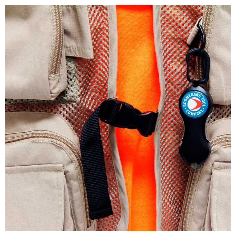 The Boomerang Tool Company Original Snip Line Cutter offers anglers a compact, lightweight, and efficient line-cutting solution. With a retractable blade design, the corrosion-resistant stainless steel cutting blades are locked and hidden away when not in use, keeping anglers and the blades safe from accidental mishaps. Extra sharp, the blades are designed to easily snip through nylon monofilament, fluorocarbon, and braided lines with a smooth and clean cut every time. Featuring a 36″ military-grade nylon fiber retractable cord and a built-in carabiner, the Boomerang Tool Snip can be conveniently attached to a fishing vest, hip pack, belt loop, or just about anywhere else to keep it always within reach. An excellent option to always have on the boat, kayak, or when walking or wading your local honey holes, the Boomerang Tool Company Original Snip has revolutionized the way anglers SNIP their lines.