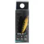 Caperlan STK 45 F is a micro topwater walking bait with outstanding bite-inducing action. Designed in Europe, STK 45 F is primarily used to target large perch and chub, while in the US, anglers have found this bait successful with smallmouth and largemouth bass, crappie, and trout. STK 45 has a wide walking action that mimics baitfish fleeing at the water’s surface and can be noticed by predatory fish from far distances. When paused, STK 45 F “dangles” at a 45-degree angle, a stance proven to trigger bites. STK 45 F is best paired with a light bait finesse or spinning combo, using a 4-6lb monofilament line or leader.