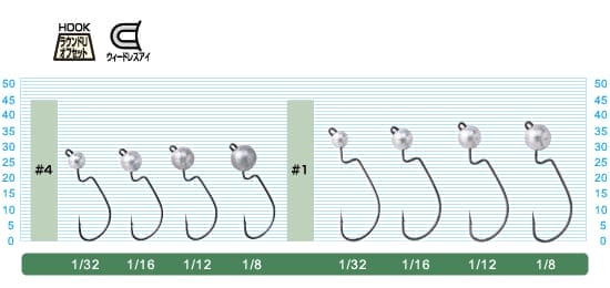 Okappari Ball Head Jigs with a size #4 hook are recommended for use with soft plastics ranging from 1.25″ to 3.5″.