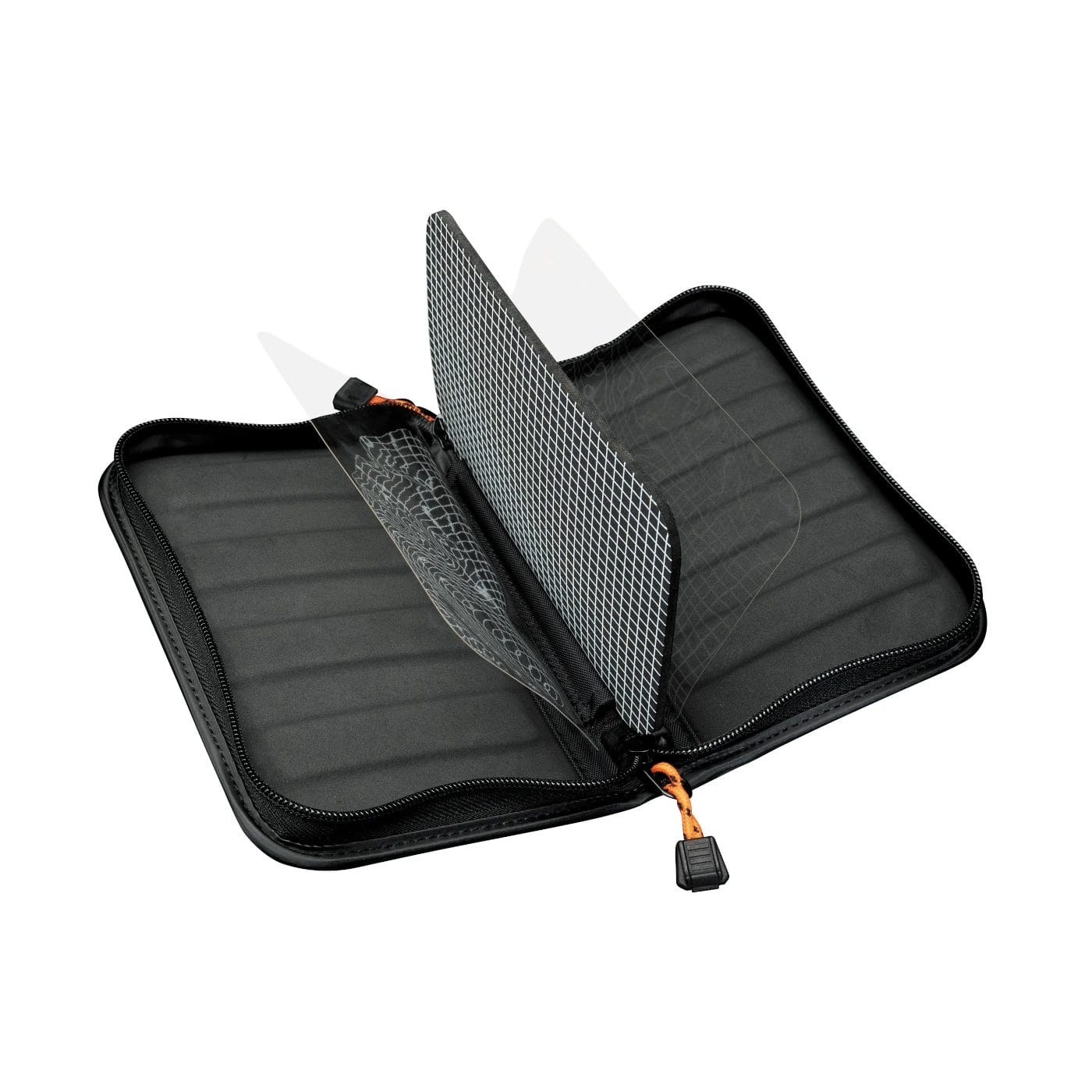 An essential accessory for any ultra-light bait finesse angler, the Daiwa Presso Wallet is expertly designed to organize and protect your small spoons, mini jigs, and other downsized lures. Available in several size options, the Daiwa Presso wallet is perfectly suited to fit in your fishing bag or carry around for quick access to your lure arsenal. It’s compact, efficient, and convenient. Built to be rugged and stylish, the Presso Wallet features a heavy-duty zipper closure with pull tabs and a durable outer PVC material shell. On the interior, the Presso Wallet features padded foam sides to keep your hook points clean, dry, and secure. It also includes clear dividers that secure the lures in place and protect them from bumping and rubbing against each other when stored. A color-matched carbainer is included, allowing for easy attachment to your fishing bag, backpack, belt loop, or bicycle.