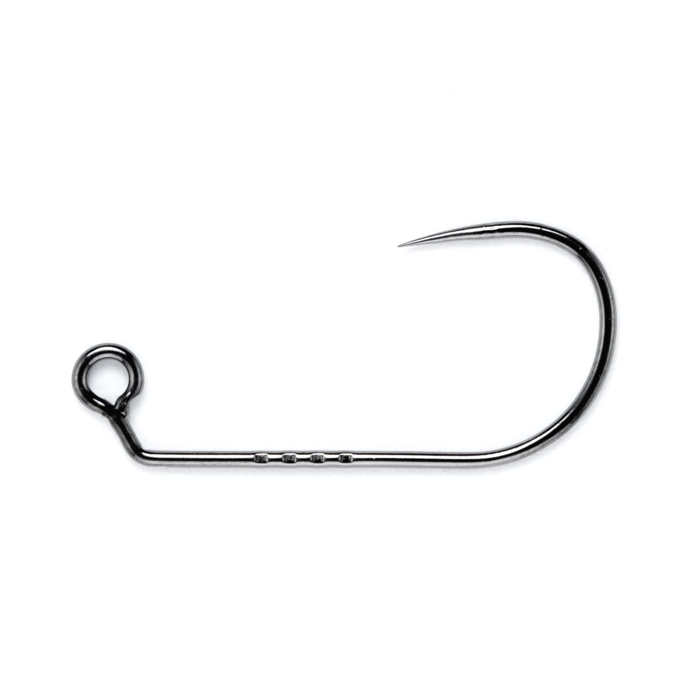 Decoy AH-12 Area Hook Jiggy is a barbless jig hook that suits self-made jigs and the popular Hover Strolling and Spine Rig techniques. AH-12 features a barbless design with a curved hook point that helps prevent breakage and holds fish well. Pressed serrations on the hook’s side prevent threads and weights from slipping when using AH-12 for feather jigs and other self-made jigs. AH-12 is finished in black nickel to enhance the wire’s hardness further.