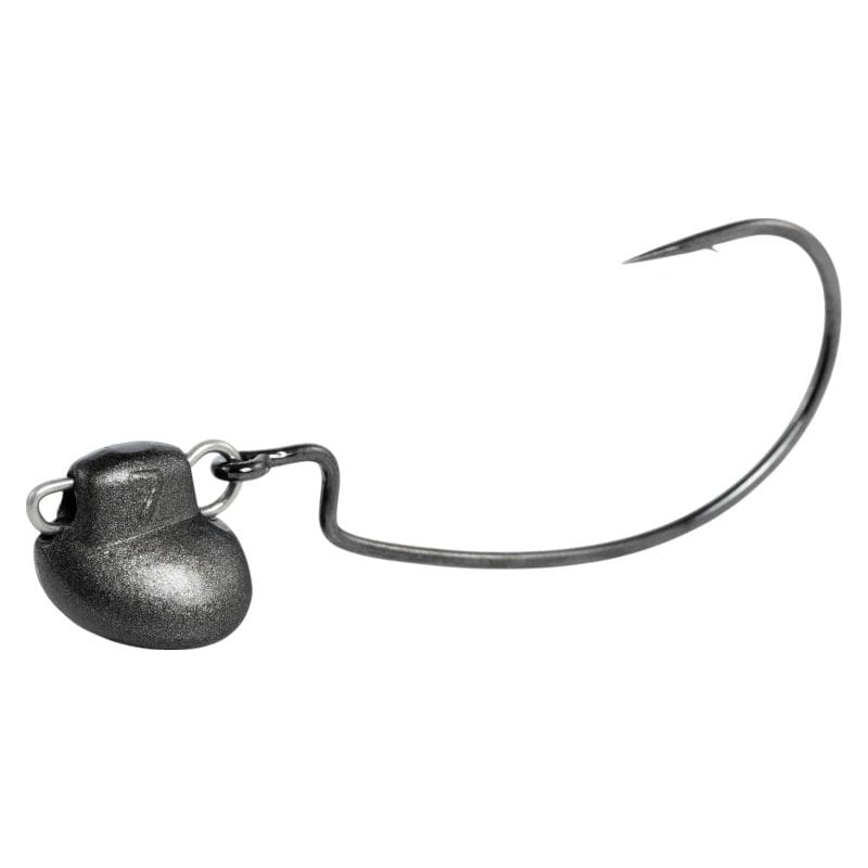 Decoy Ds-13 is a football-jig shaped sinker head that allows you to create a wobble style action utilizing your favorite offset hook. The head shape allows for rigging in either direction, with one configuration providing a tapered profile that slips through cover with ease, and the other providing reduced forward movement, allowing the lure to be worked in place. Rigging DS-13 is simple: remove the included pin from the sinker, attach your hook of choice to the pin, and then reinsert the pin into the sinker before tying off to your line. Molded from a dense lead alloy, DS-13 provides outstanding sensitivity and is finished in gunmetal black to camouflage the sinker. DS-13 is compatible with all sizes of the popular Decoy Worm17 offset hook and most other hooks with a large eyelet.