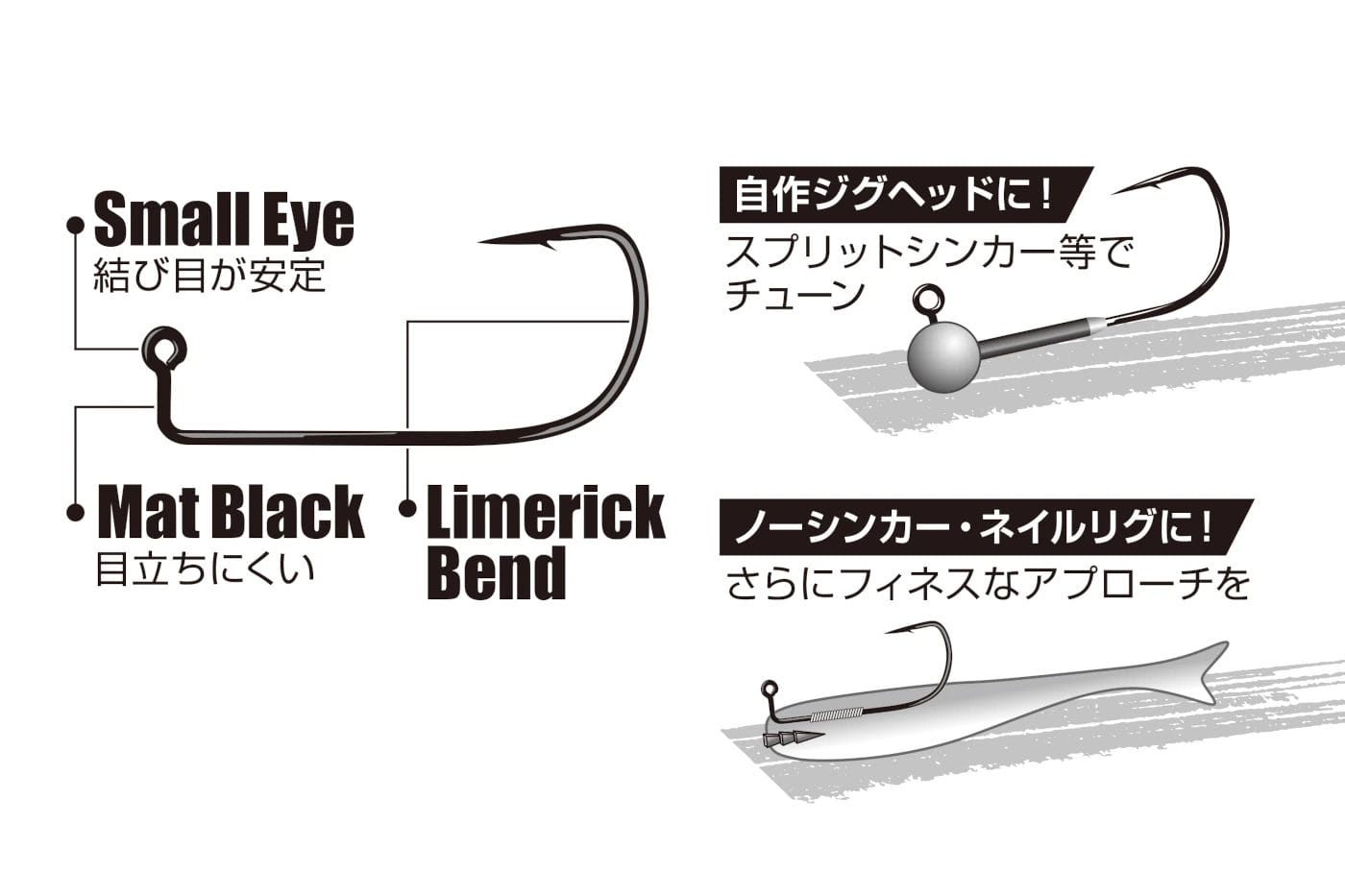 Decoy JIG52 Limerick is a specialized jig hook developed for finesse light line applications such as hover strolling and light swimming jigs. The limerick-style hook bend provides excellent hooking and helps avoid hangups. With its long shank, JIG52 provides more stable lateral movement, the key to getting the correct hovering action when using strolling presentations. The 90° eyelet provides just the right angle on retrieve, creating a firm roll and flickering action that calls in bass from far distances. JIG52 is also an excellent choice for the DIY jig enthusiast and can be used for tying feather jigs or as a base hook for pouring jig heads.