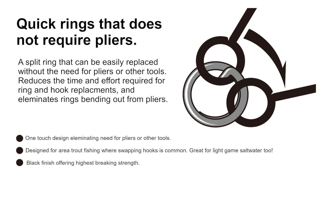 Decoy’s R-7 Quick Rings are a new take on the standard split ring design that allows for “one-touch” ring changes without needing pliers. The hassle of changing hooks is over, and now the work can be done quickly and without causing any damage to the rings. R-7 quick rings are designed for area trout fishing where hook swapping is standard practice; they also work well when targeting light game saltwater species. The NS Black finish maximizes the wire hardness. Ideal for the small lures used in trout and rockfish angling.