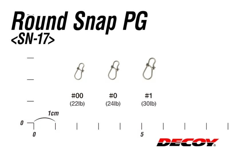 Decoy SN-17 Round Snap PG is a new, reinforced version of Decoy’s popular lightweight round snap. By wrapping the wire end around the shaft, Decoy created a Power Grip that increases durability and suppresses warping when force is applied. To further add to the durability, SN-17 is built from a thicker wire gauge using a new metal alloy that offers enhanced elasticity and less metal fatigue than other snaps. The wide round bend shape of Decoy SN-1 Round Snap PG allows a lure its full range of motion in the water, giving anglers the best presentations to attract and catch fish. Designed for use with small plugs when targeting trout, bass, and light salt game, SN-17 Round Snap PG can be trusted with trophy catches and unpredictable guest fish.