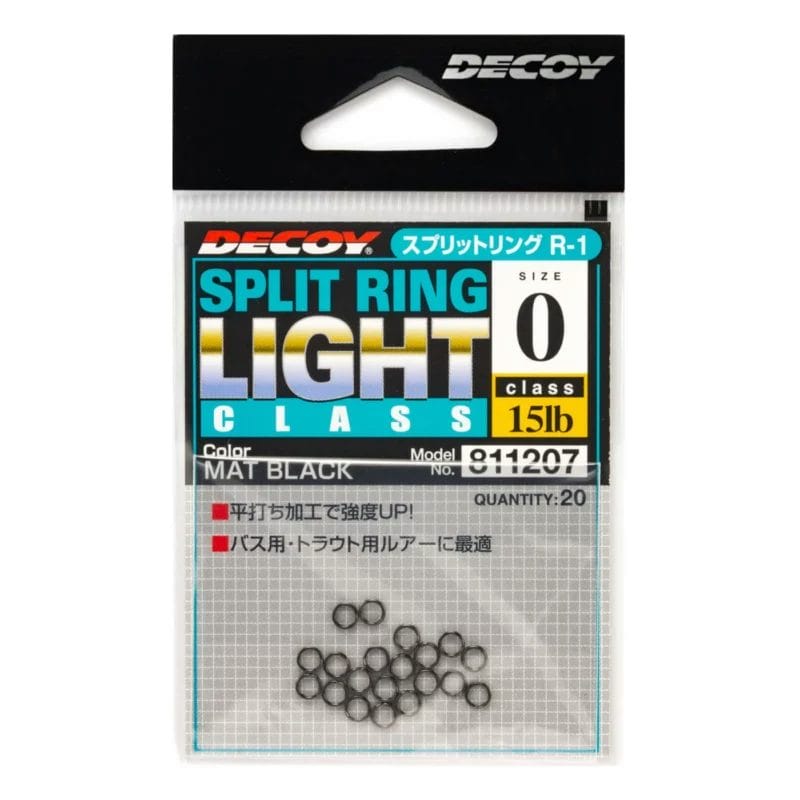 Decoy R-1 Split Ring Light Class is an excellent, high-quality option when changing out split rings on small and medium-sized lures. Constructed with a unique inner cut design, these hook rings allow for easy attaching of hooks and lure eyelets. Available in multiple colors to best suit various angling situations. When targeting wary bass and trout, the matte black color is recommended for a more stealthy approach. Made in Japan, Decoy Split Ring Light Class are strong, durable, and can provide improved action to your favorite lures.