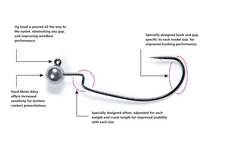Decoy VJ-71 Nail Bomb Jig features an original design offset that has been meticulously engineered to improve weedlessness and hooking performance. With the offset bend and the hook point perfectly placed to secure soft plastics for a snag-free presentation, VJ-71 Nail Bomb achieves a high level of usability with a variety of bait types and sizes. The round jig head design provides a slight wobble to your presentation when swimming baits and offers a high degree of rolling action when worked on the bottom.