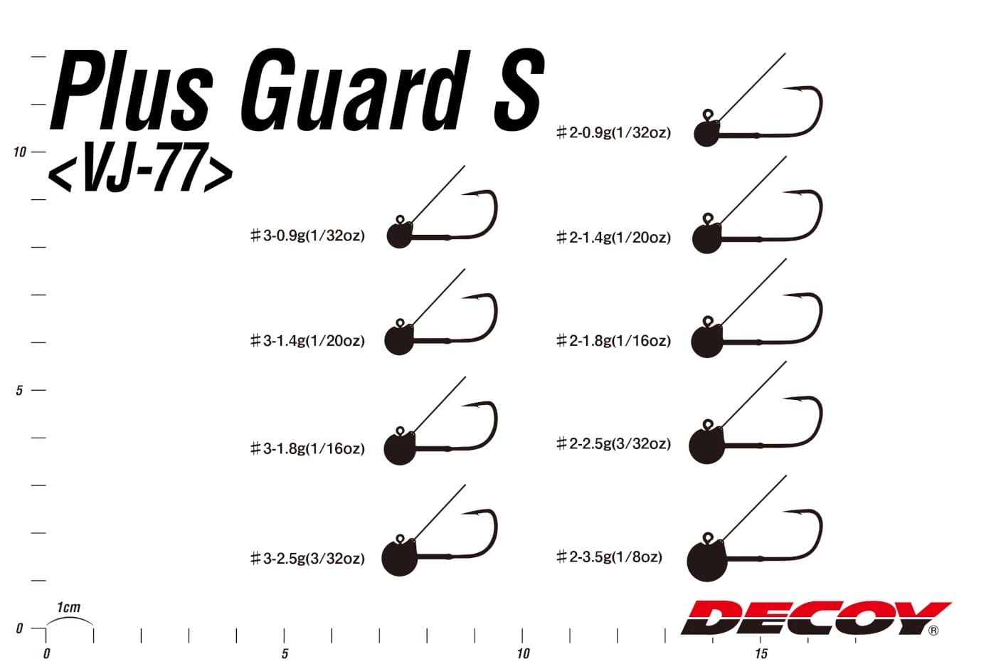 A versatile ball jig head designed for bait finesse and light line applications, Decoy VJ-77 Plus Guard-S is ideal for presenting finesse soft plastics in various conditions. Based on Decoy’s popular VJ-74 Plus Magic jig head, VJ-77 incorporates a stealthy weed guard for added versatility. The single-strand mono-guard weed guard requires very little pressure to set, allowing anglers to target fish hiding in cover while using light lines and downsized baits. Featuring a sticky, sharp limerick-style jig hook, VJ-77 offers excellent penetration and incredible holding power for an increased catch rate. Equipped with a rubberized tube-style bait keeper that secures baits in place without tearing. VJ-77 Plus Guard-S is an excellent choice for small worms, swimbaits, mid-strolling, and as a platform for DIY skirted finesse jigs.