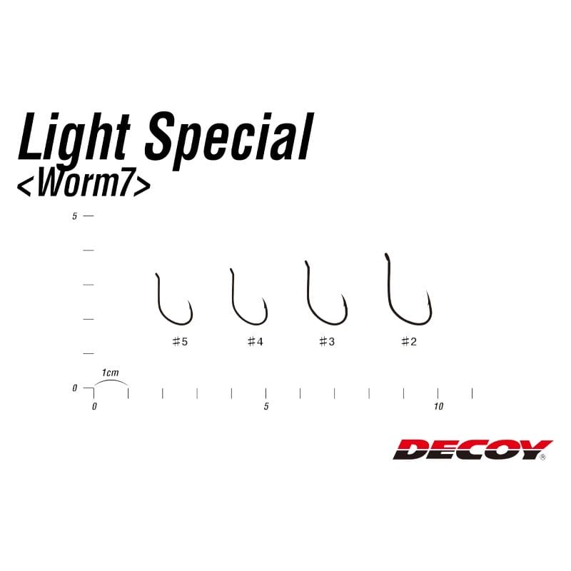 Designed for versatility and ease of use, Decoy Worm7 Light Special is a dropshot-style hook that offers excellent performance in tough conditions. Crafted in Japan from a premium-quality light-gauge wire, Worm7 Light Special offers a balanced design that combines torque and power attributes to enhance the strength of the hook. The curved hook point design enables ultra-smooth penetration with minimal hooksets and effortless removal once the fish has been netted. Perfect for dropshot rigs, wacky rigs, neko rigs, split shot rigs, and more, Worm10 is a go-to hook for tournament bass anglers who need consistent and dependable performance.