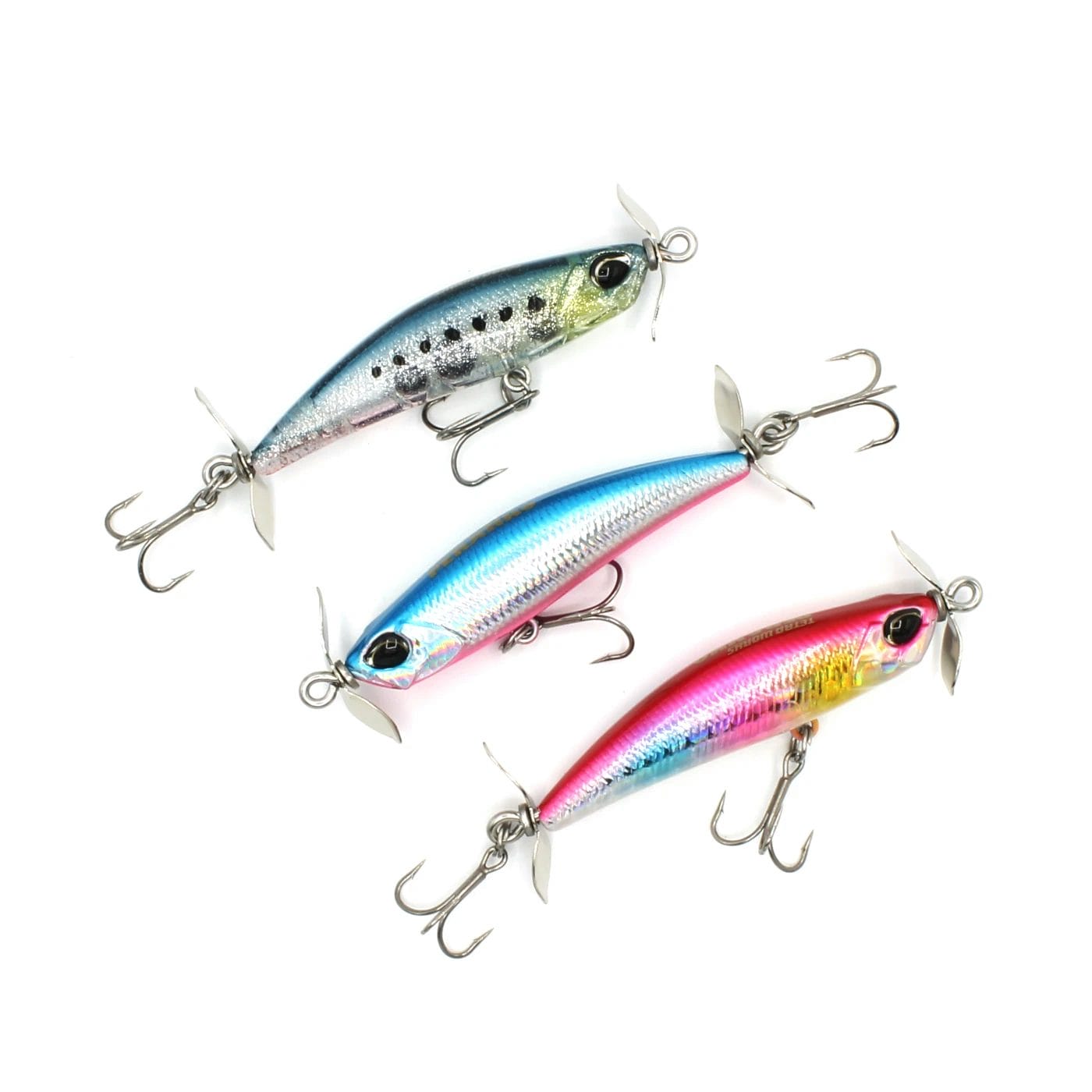 The Perakko from Duo Tetra Works is an excellent option for finesse anglers needing a subtle presentation to draw in large bites. This micro spy bait is equipped with fine-tuned propeller blades at the front and rear of the body, creating a micro pulsating effect that attracts curious fish from long distances. The body of the Perakko offers a straight action with a minimal wiggle, perfect for cautious fish that would otherwise be spooked. Extremely easy to fish, cast the Perakko beyond the intended target area, countdown while it sinks to target depth, and then retrieve in a straight line. Perakko’s running depth can be varied by slowing down or speeding up the retrieve. Like all of Duo’s Tetra Works series of finesse lures, Perakko is equipped with saltwater-safe hardware and can be used to target light game inshore species and freshwater bass.