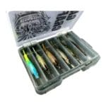 The Gan Craft Small Reversible Box is the perfect storage solution for the Jointed Claw 70 and other slim-profile lures. Featuring the Gan Craft face logo and a clear smoke finish for easy identification of lures. With a total of twelve slots, six on each side, the Small Reversible Box can be packed full of your downsized favorites to complement a day out on the water perfectly.