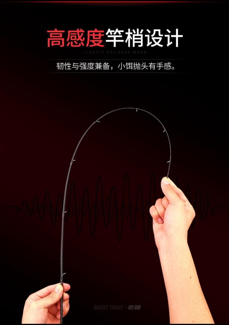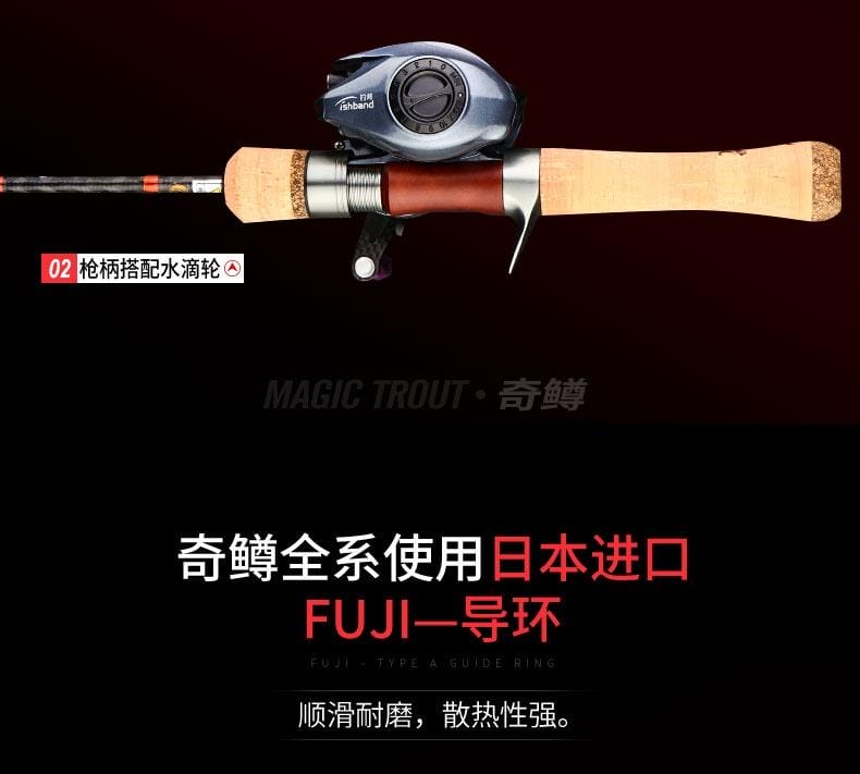 Built using a cross-fabric graphite construction, the blank of the Magic Trout Rods are both durable and sensitive. The fast action and nimble tip make them ideal for detecting light bites, even in fast-moving water conditions. Equipped with Fuji Alconite Guide Rings, a premium 3A cork handle, and a polished wood reel seat, vibrations are easily transmitted from line to angler, adding to the overall sensitivity of the rod. These rods also feature the Magic Trout Series signature dragon emblem stamped on the cork and the iFishband logo on the butt cap.