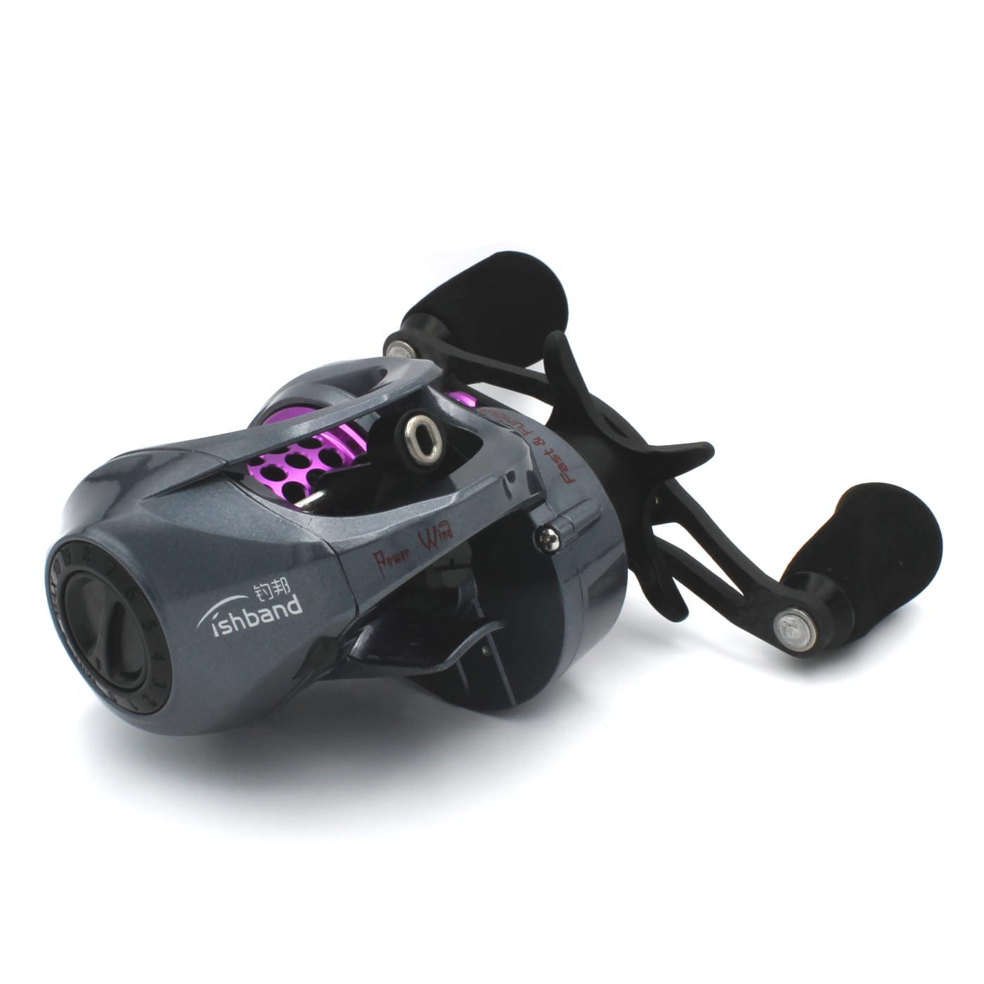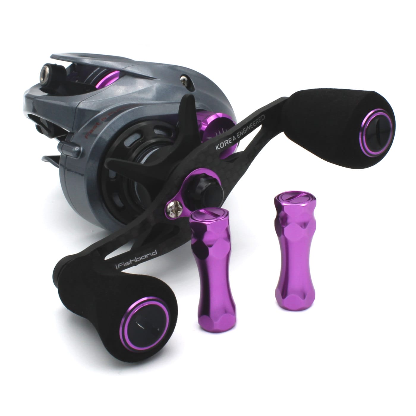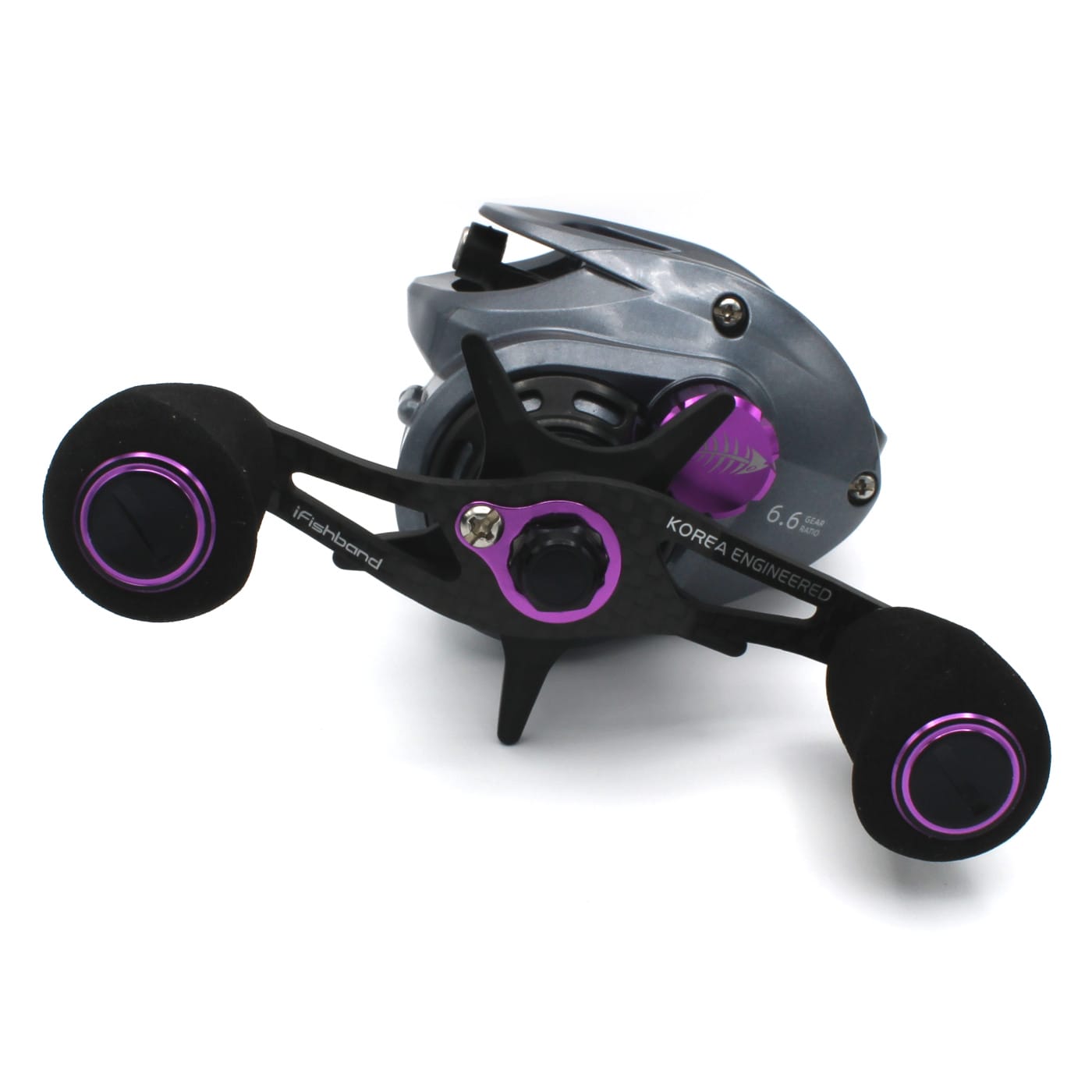The PW100 Plus is an excellent choice as an affordable and stylish reel for bait finesse fishing. This is the improved version of the original and highly popular iFishband Power Wind 100. Built with a rugged carbon frame and handle, the iFishband PW100 Plus weighs 4.9 oz and is compact and comfortable enough for all-day fishing. With its lightweight, highly ported spool and its externally adjustable magnetic braking system, the PW100 Plus offers controlled casting of ultralight lures below the 2g range. Other notable features include a clicking drag star, a clicking tension knob, and a clicking drag for an audible alert to the line being pulled. In addition to the standard EVA handle knobs, the PW100 Plus also includes an additional set of handle knobs made from aircraft-grade aluminum that perfectly match the reel’s purple spool and accents.