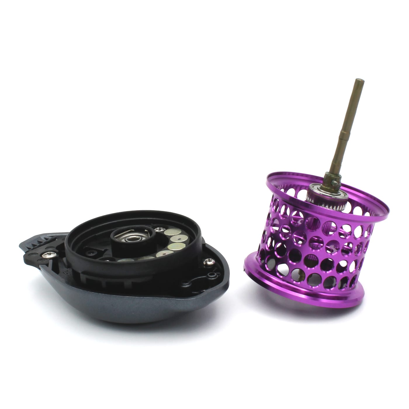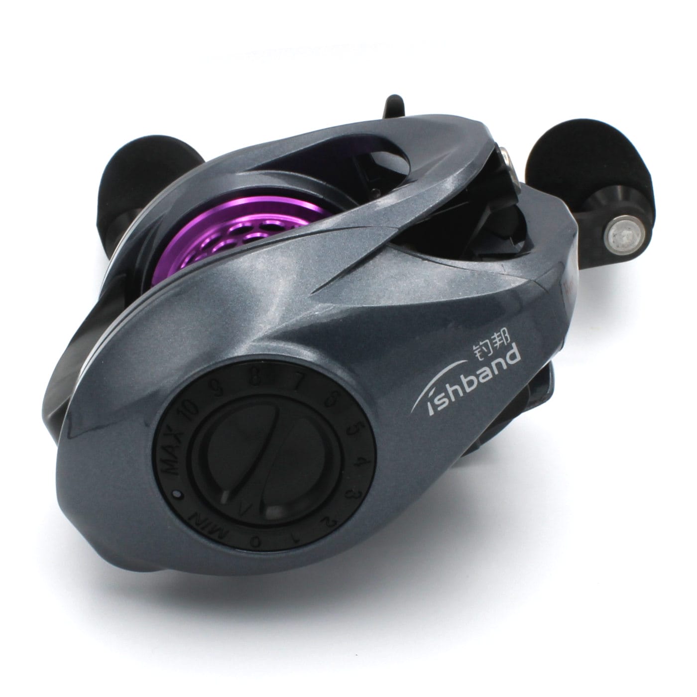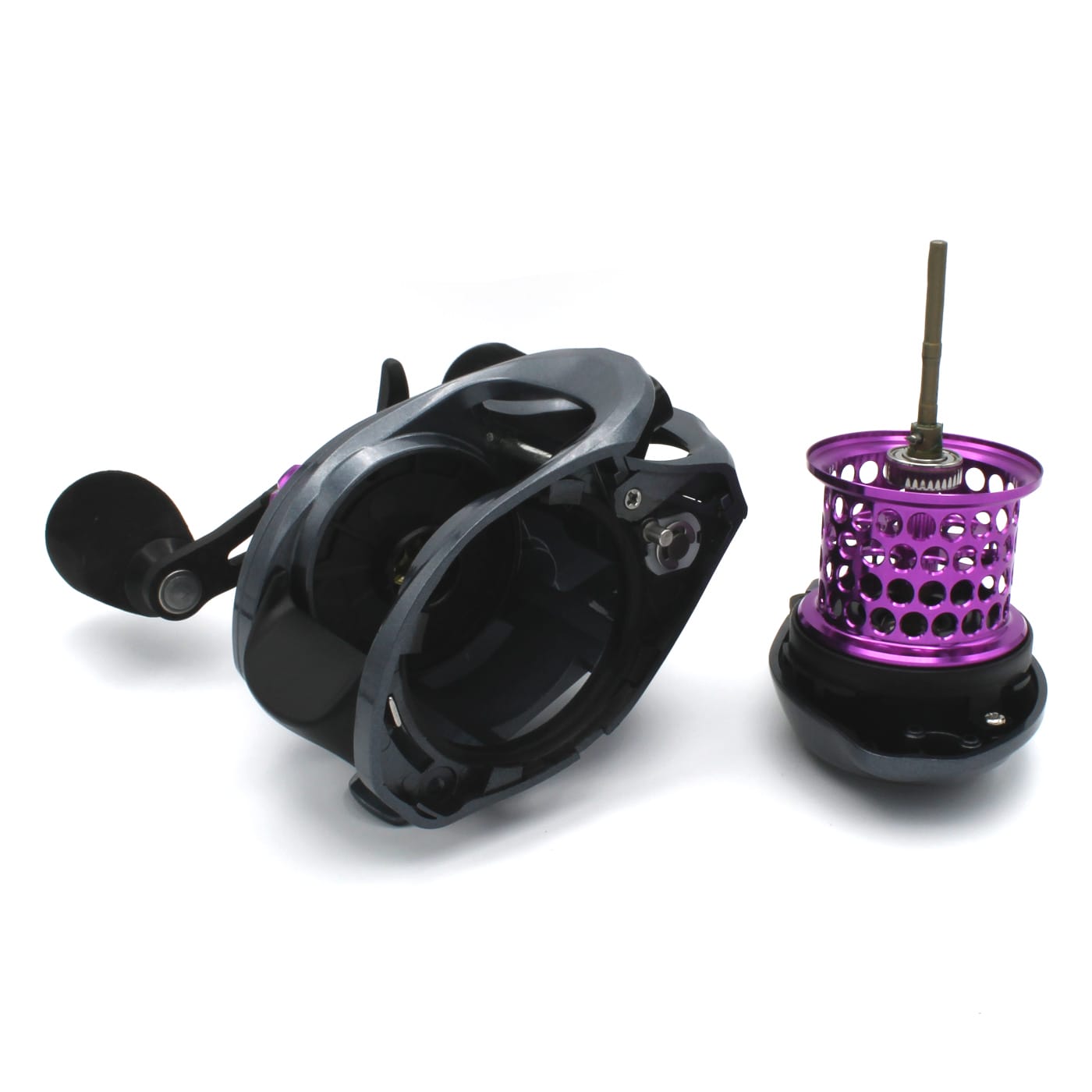 The PW100 Plus is an excellent choice as an affordable and stylish reel for bait finesse fishing. This is the improved version of the original and highly popular iFishband Power Wind 100. Built with a rugged carbon frame and handle, the iFishband PW100 Plus weighs 4.9 oz and is compact and comfortable enough for all-day fishing. With its lightweight, highly ported spool and its externally adjustable magnetic braking system, the PW100 Plus offers controlled casting of ultralight lures below the 2g range. Other notable features include a clicking drag star, a clicking tension knob, and a clicking drag for an audible alert to the line being pulled. In addition to the standard EVA handle knobs, the PW100 Plus also includes an additional set of handle knobs made from aircraft-grade aluminum that perfectly match the reel’s purple spool and accents.