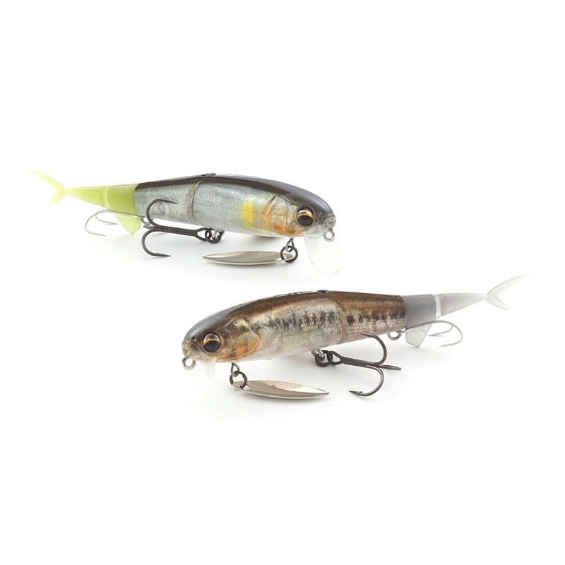 The Imakatsu Bebikira Wake (aka – Baby “Killer Wake”) is a small hardbody minnow wakebait designed to target topwater and subsurface layers, drawing bites from even the most pressured fisheries with its ultra-finesse presentation. Designed by renowned professional angler Naoyuki Mihara, Beibikira Wake is crafted in Japan to the highest standards and packs a list of creative features that set it apart from all other small wake baits. Beibikira Wake features a small, single-jointed hard body with a soft plastic tail, giving the lure a lifelike swimming action no matter the retrieve speed. The nose of the bait features detailed molding and realistic eyes, in addition to the small and durable bill that gives Beibikira Wake its subsurface dive and slithering action. The underside of Beibikira Wake is equipped with a small double hook at the tail and a deadly sharp treble hook hanging from the belly, ensuring a high hookup ratio no matter where the bite comes from. Under the head of Beibikira Wake is a compact underspin willow blade that draws in fish with its brilliant flash while also helping the lure track true with its lowered center of gravity. Extremely versatile, Beibikira Wake is equally effective when burned subsurface at high speed as it is slowly crawled, twitched, and deadsticked on topwater.