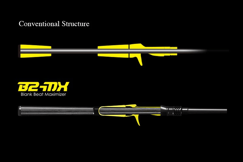 The blank with a sharply expanded diameter at the butt part has a new design in which the signal captured at the tip of the ear is echoed and amplified by the large cavity secured inside the handle and clearly transmitted to the angler. In addition, the thickness of the attached reel seat and grip material has been greatly reduced, which minimizes the weight due to the bonding of parts, leading to further weight reduction and higher sensitivity.