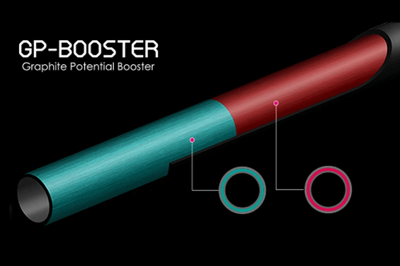 GP-BOOSTER is a design concept that makes it possible to eliminate blank flesh by placing materials with different elastic moduli and characteristics only in the necessary parts according to the application. By arranging materials with different elastic moduli in the same layer and suppressing the excess thickness, the characteristics of each material are maximized and the ideal action power is realized with lighter weight and higher strength.