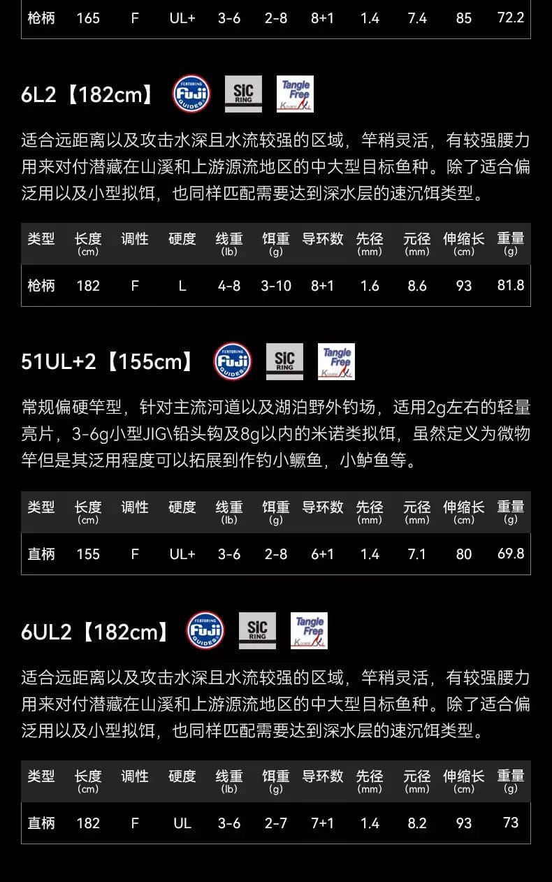 Premium Fuji SiC guide rings for a smooth, durable, casting experience with increased casting distances.