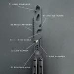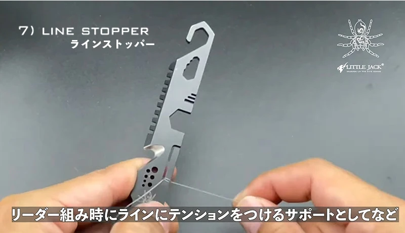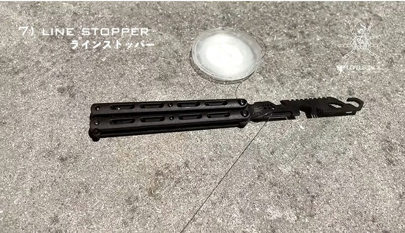 7) LINE STOPPER – Wrap your line around this portion of the tool to hold it taught and in place. Helpful in tying leaders or pulling braided lines from snags to avoid damaging your rod (and fingers!).