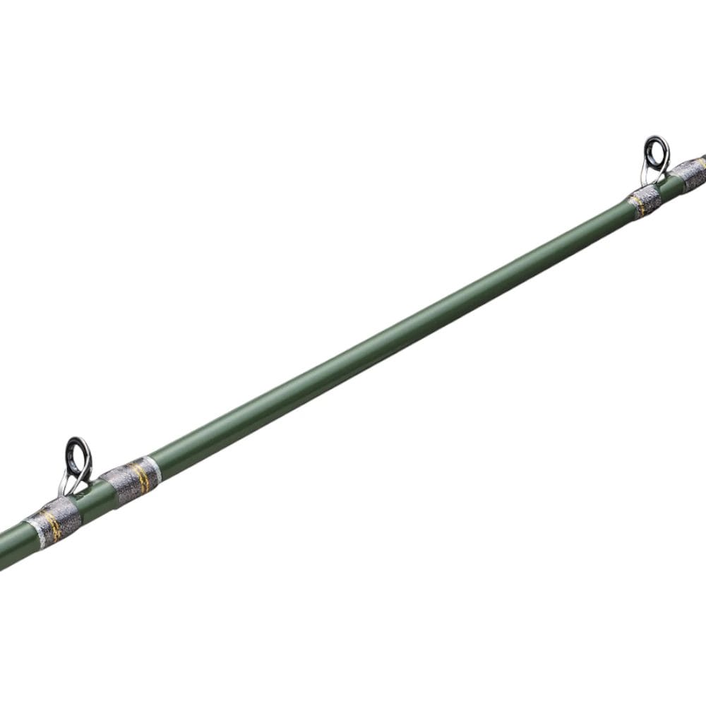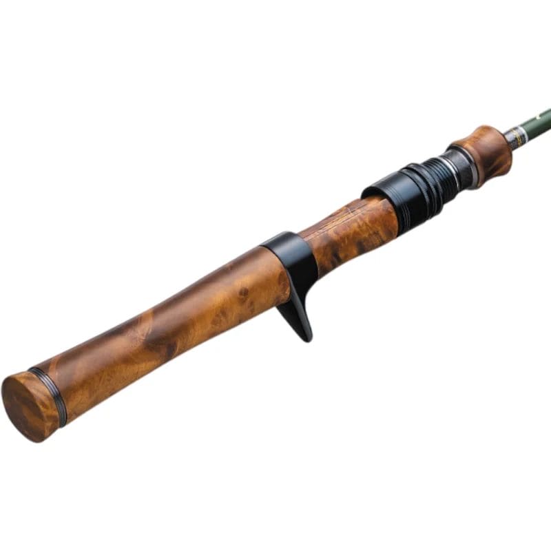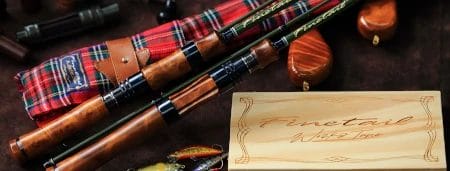 The Major Craft Finetail Works Tune series was crafted from a desire to offer anglers a fresh blend of expertly tuned performance and premium design aesthetics. Combining a beautifully carved wooden grip with natural wood grain patterns and a high-quality olive green blank, the Finetail Works Tune hits all the marks for enthusiast stream trout anglers. Constructed from UD (unidirectional) fiberglass, the blank offers a carefully engineered blend of supple tip action and a powerful moderate-fast action backbone that allows anglers to control even the feistiest trout. With the attributes of fiberglass, the rod offers a forgiving bend when fish are on, helping to keep them pinned through every jump and run while also providing excellent loading characteristics for pin-point accurate casting. Outfitted with top-of-the-line Fuji SiC guide rings for impeccable casting control and sensitivity, anglers are offered an unsurpassed ability to feel and manipulate their lures. Finished with beautiful visual touches, from the deep blue thread wrap to the shine of the natural wooden reel seat, the Finetail Work is aesthetically pleasing, adding another layer of immersion to the fishing experience.