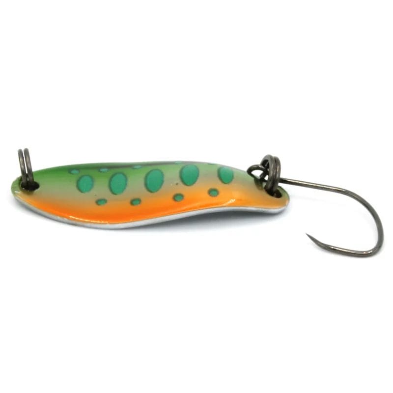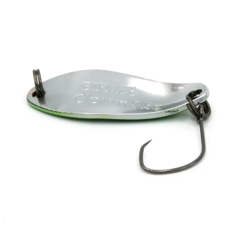 The Mukai Bikaze Clown Spoon 3.5 is a 1/8oz variant of Mukai Clown Spoon, which can be comfortably used for Area Trout fishing in stocked ponds and lakes, as well as in more natural trout environments such as rivers and mountain streams. The front-heavy design prevents it from swimming upwards, allowing it to stay in the strike zone even when working through fast currents. With excellent casting distance and a stable swimming posture, Mukai Bikaze Clown Spoon 3.5g is a perfect choice for beginner and expert spoon anglers looking for an easy-to-use and highly effective trout spoon.