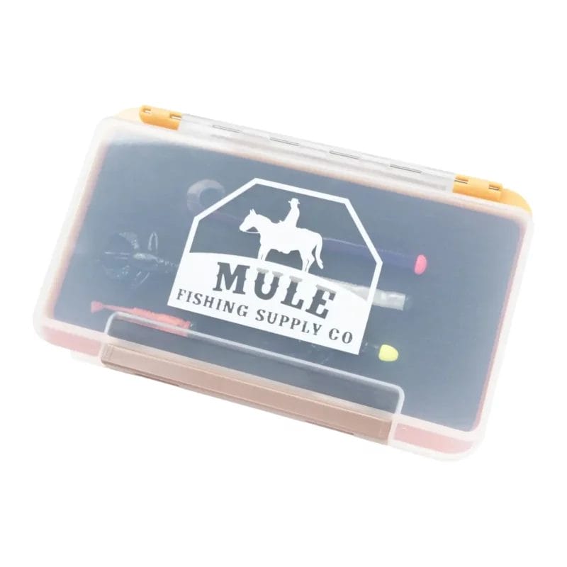 The Mule Fishing Double-Sided Tackle Organizer is a lightweight, portable storage solution perfect for organizing your favorite Mule Fishing jigs and baits. With its double-sided approach, it features a traditional divider system on one side and a foam insert on the other. Perfect for storing loose terminal tackle, as well as pre-rigged Mule Fishing. The Mule Fishing Double-Sided Tackle Organizer includes 15 dividers that can be used to customize spacing, allowing for up to 18 individual slots.