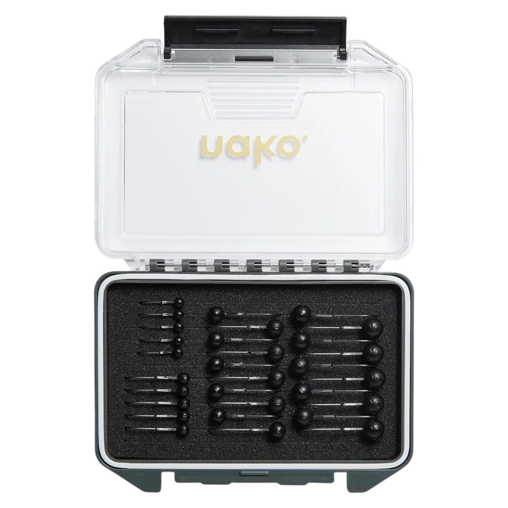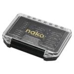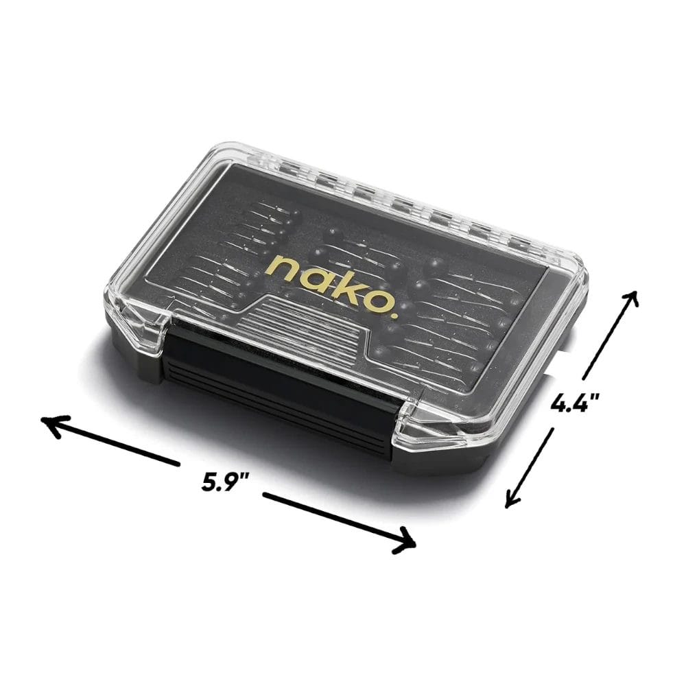 A compact and durable storage solution and organizer for your Nako Jig Heads, the Nako Terminal Jig Head Box offers both portability and durability. The Nako Terminal Jig Head Box is built from a rigid and sturdy plastic that will withstand most bumps and falls and features a full-length metal reinforced hinge for added durability. The interior of the box is equipped with dense foam sponge padding with pre-cut splits so anglers can conveniently store and organize jig heads (and hooks, spoons, flies, etc.) for easy access while out on the water. For added security, a silicone gasket is used to create a seal against water, dust, and other elements. A transparent lid design is also utilized so that anglers can quickly find the correct jig. Coming in at under 6″ in length and roughly 1″ thick, this small tackle solution can easily be stored in a cargo pocket, vest pocket, fanny pack, or backpack, making the Nako Terminal Jig Head Box an excellent option for bank anglers and anyone looking to downsize their loadout.