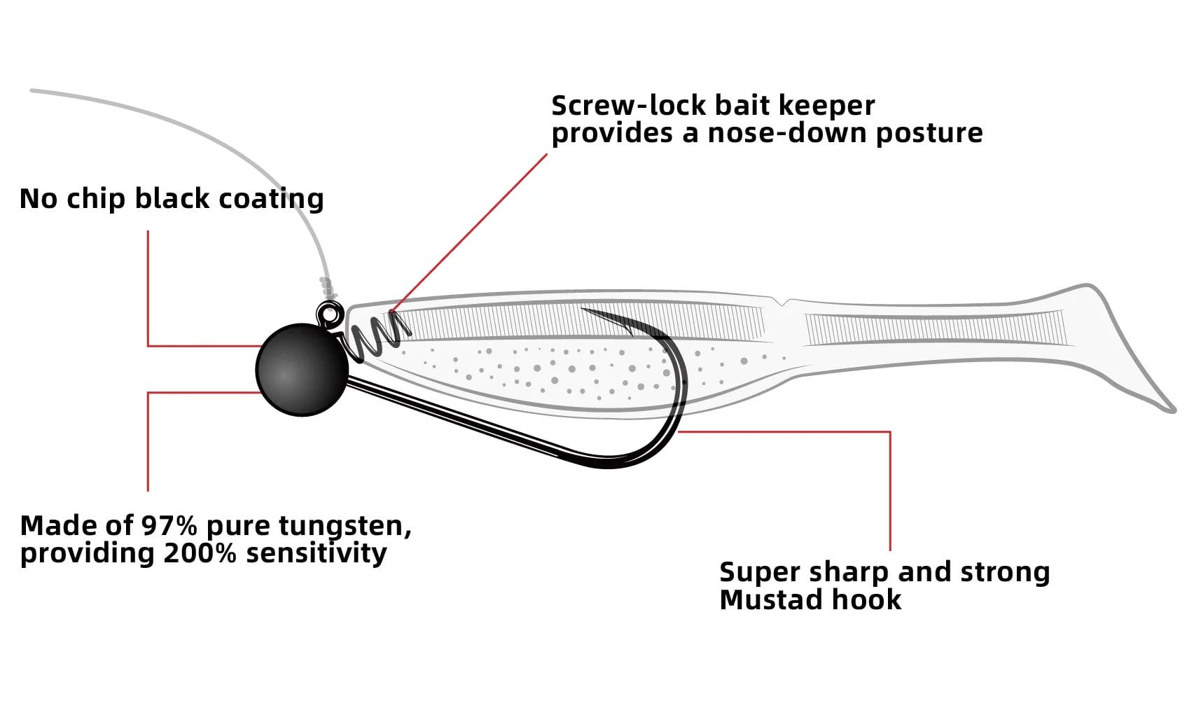The Nako Ball Shaky Head Jig is perfect for securely rigging your favorite soft swimbaits, craws, worms, and more. Made from 97% pure tungsten, the ball head design offers a dense and compact presentation. Offering 2x the sensitivity of lead, these jig heads transmit every bump and bite. The ultra-sharp Mustad hook offers an excellent hook-up ratio and a great hold, putting more fish in the boat. Baits are secured by a screw-lock keeper, giving you the perfect upright posture on the bottom when dragging your bait. The Nako Ball Shaky Jig Head is finished with a no-chip and no-fade black coating for added durability.