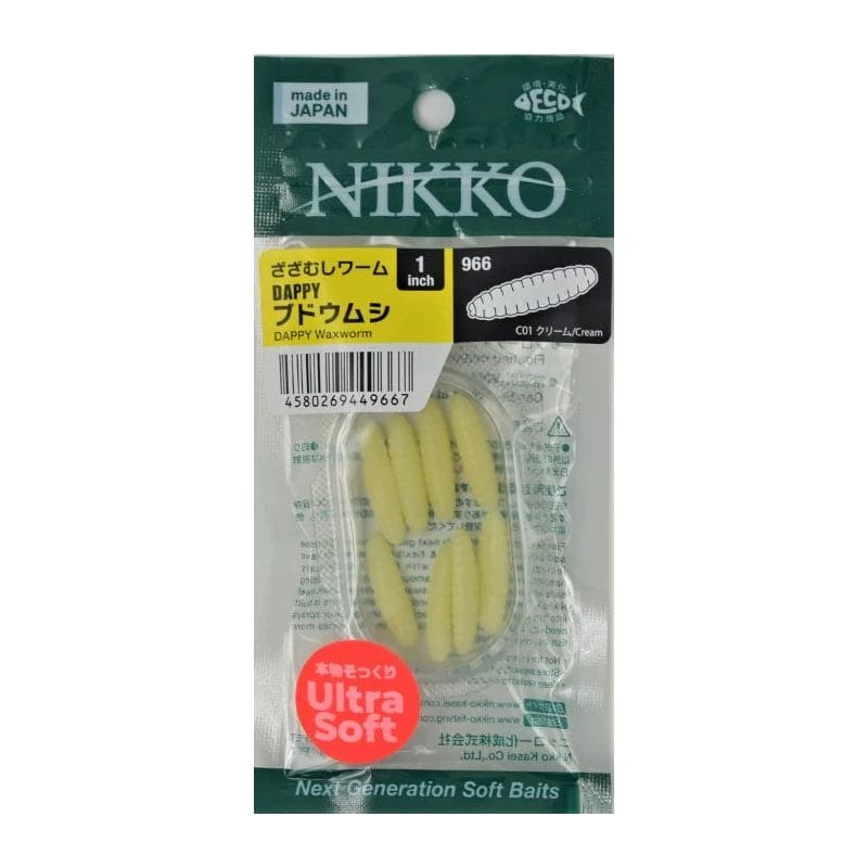 The Nikko Waxworm is a wonderful bait for targeting trout, panfish, and more when the bite is tough and downsizing is a must. The Waxworm is made from Nikko’s durable DAPPY plastic material, which is so soft that even these tiny baits actually have action. Highly realistic details such as a tiny mouth and protolegs (that you may need a magnifying glass to see) give the Nikko Waxworm that extra edge to entice bites when nothing else is working. Like all Nikko baits, the Waxworm is phthalate and toxin-free, ensuring the fish and waterways are not harmed should the bait get snagged or stolen. A finishing touch of natural scent seals the deal.