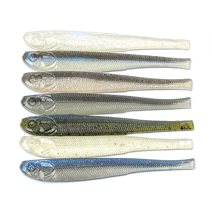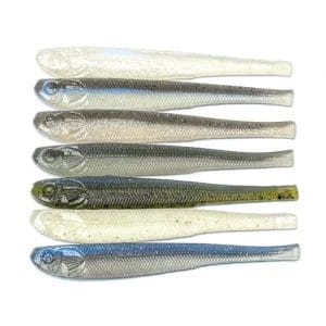 The Nishine Lure Works Dropshot Minnow is a premium hand-poured soft minnow specifically crafted for maximum buoyancy and lifelike movement. When paired with the innovative Nishine DS Hook, they will stay perfectly perpendicular in the water, allowing for natural movements in currents and from rod tip movements. In addition to the finely detailed scale pattern, gill plates, and eye sockets, the Nishine Dropshot Minnow also features a lifelike baitfish profile and colorways for the perfect presentation to draw in pressured bass. Always an excellent option as a drop shot bait, Nishine Dropshot Minnow is also highly effective when wacky rigged or fished on a ball head jig.