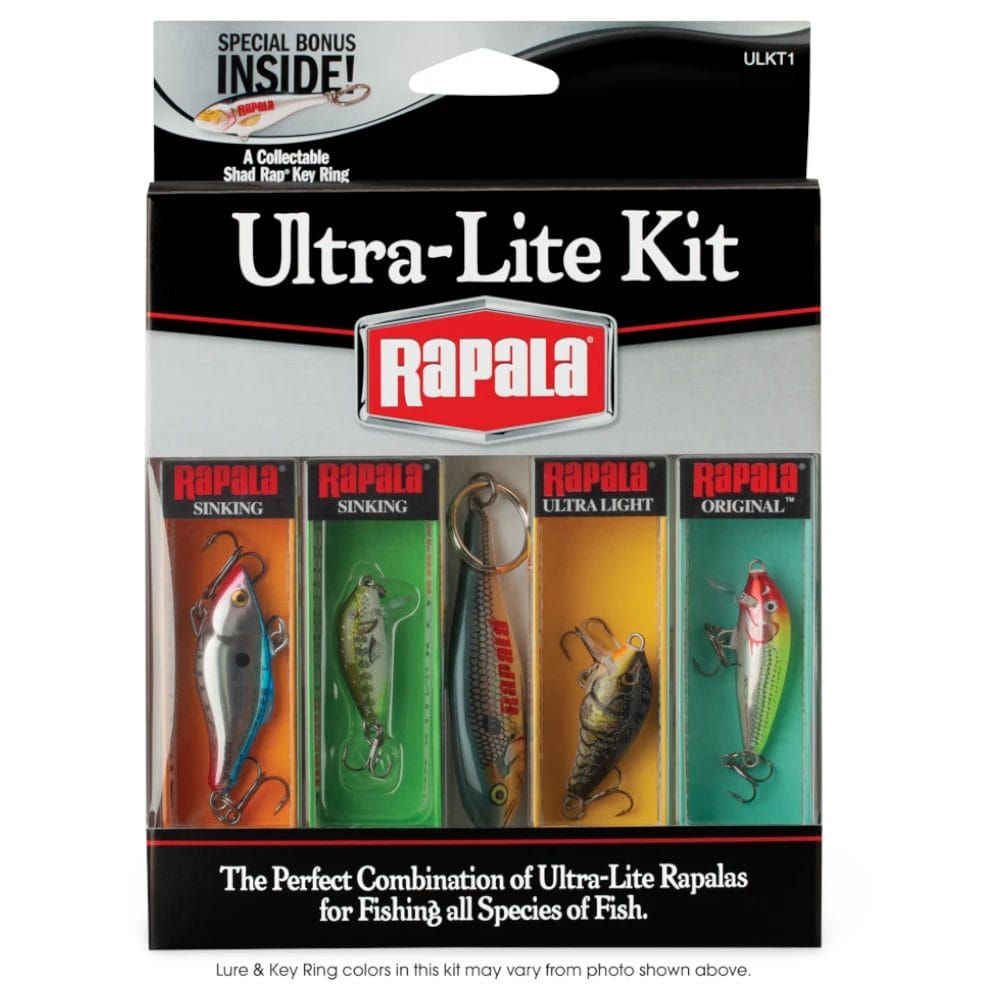 An excellent choice for anglers looking to get started in ultra-light fishing, the Rapala Ultra-Lite Lure Kit includes four lightweight lures chosen by Rapala pro staff as well as a collectible Rapala Shad Rap Lure Key Ring. Perfect for any species of light gamefish, from trout and panfish to bass, walleye, and more, the Rapala Ultra-Lite kit has you covered for every layer of the water column and every type of small waterway. Lure weights range from 2g~6g (1/16oz~3/16oz), 1~2″, and work best with an ultra-light or light power bait finesse or spinning rod, paired with a 3~6lb nylon or fluorocarbon line.