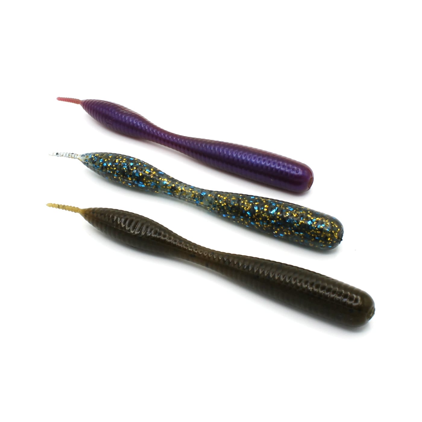 Designed for Ned rig and Dropshot fishing, the Reins RND Fat is a soft bait proven to increase your catch ratio. Featuring a contoured plump body with a needle tail, the RND Fat offers a finesse action that draws bites from even pressured fish. Embedded with a strong shrimp scent to increase bite rate and keep the bass holding on, the RND Fat is an excellent option when facing challenging conditions. Try the RND Fat on your favorite mushroom head jig, paired with a Reins Tungsten dropshot weight, or on a traditional Texas rig.