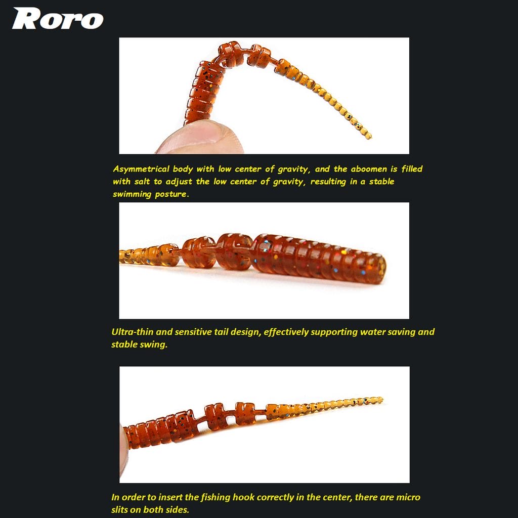 The Roro Micro Finesse Swimbait is made to perfectly pair with the Roro VIB Micro Vibrating Blade Bait. This small soft plastic comes in at 1.6″ in length and 0.4g for a perfect bite-size bait for trout, bass, panfish, and light saltwater species. Featuring a low center of gravity on an asymmetrical body infused with salt, the Micro Finesse Swimbait offers a stable swimming posture. The ultra-thin tapered tail design provides an excellent flicking action during the retrieve and entices bites from fish of every size. Featuring hook slits on top and bottom, the Roro Micro Finesse Swimbait is easy to rig straight to ensure the correct action is presented on every cast. Try the Roro Micro Finesse Swimbait as a trailer, on a small jig head, or even as an extra finesse dropshot presentation.