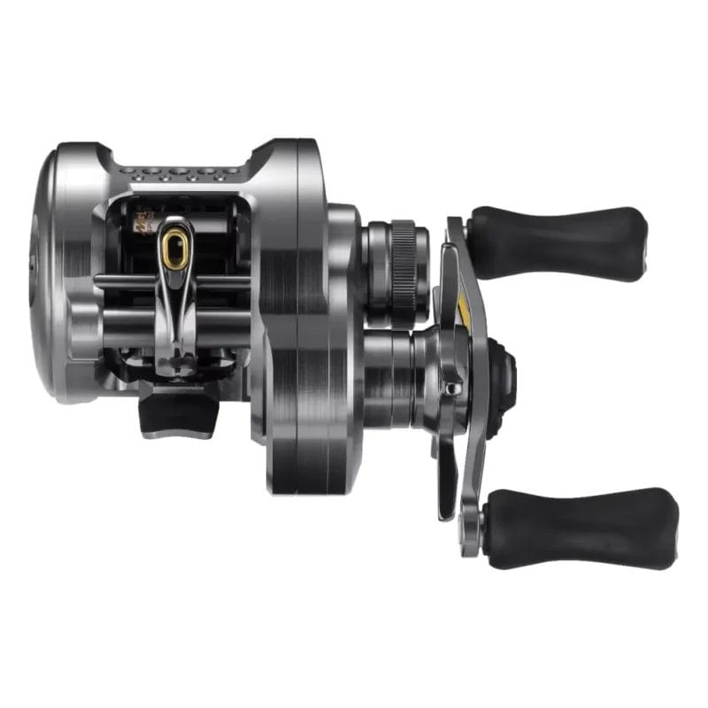 Shimano’s flagship BFS reel, the 2023 Calcutta Conquest BFS, is a specialized machine that condenses a wide array of cutting-edge features into an elegant, compact, machined circular body. Equipped with an updated Magnumlite Spool III (MGL III) and an all NEW FTB brake system, the Calcutta Conquest BFS exhibits exceptional performance with lightweight lures, allowing for controlled glides, skips, and flips when using as light as 1g. The FTB brake system, which moves the braking components off the spool, allows for an ultra-light spool weight and minimal startup inertia needed for smooth casting. The magnetic braking dynamically adjusts based on the spool’s centrifugal properties, allowing for stable, accurate, and elongated casting compared to previous iterations. The braking performance has also been improved with a fully adjustable dial, which allows for a true free spool when adjusting to minimum brake application.