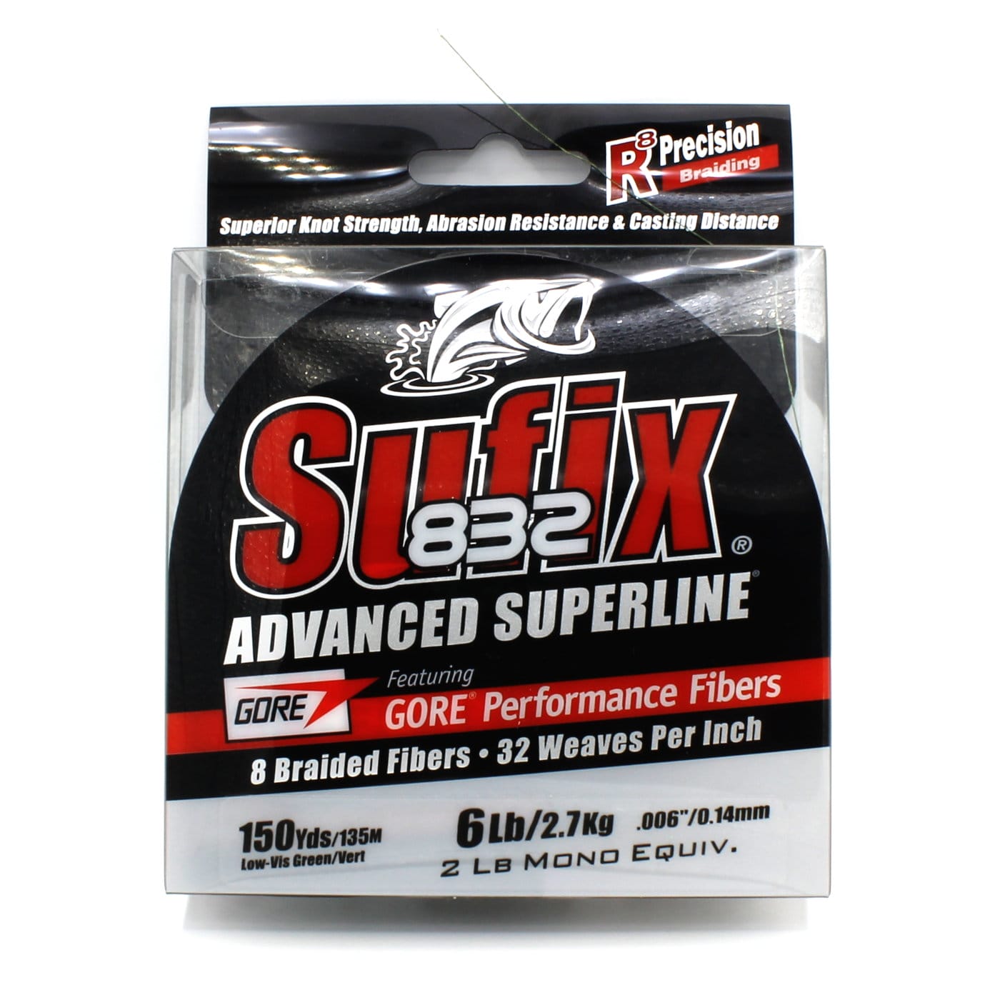 Sufix 832 Advanced Superline is the strongest thin-diameter braided line made for the US market. Featuring eight strands (1 Gore Performance Fiber and 7 HMPE Fibers) and 32 weaves per inch, Sufix 832 Advanced Superline offers superior abrasion resistance, increased sensitivity, and hydrophobic water-repellent protection. Sufix 832 flows smoothly through the lines, making it well-suited for ultra-light anglers and bait finesse enthusiasts.