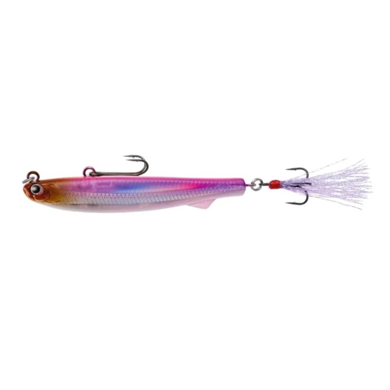 Equipped with a treble hook at the rear and a double hook on top, Glimmer has an exceptional hookup ratio and keeps fish pinned tight. The top hook is ingeniously held in place with a magnet so that it lies flush against the lure’s back, keeping the lure running true and straight while also allowing the hook to quickly pull away from the lure body during a bite for a clean hook set. Glimmer offers further advantages with its highly detailed and realistic colorways that have a high level of appeal and can be matched to local forage. Glimmer 6 is internally weighted, giving it excellent casting distance and an effective target depth range of 1-6ft.