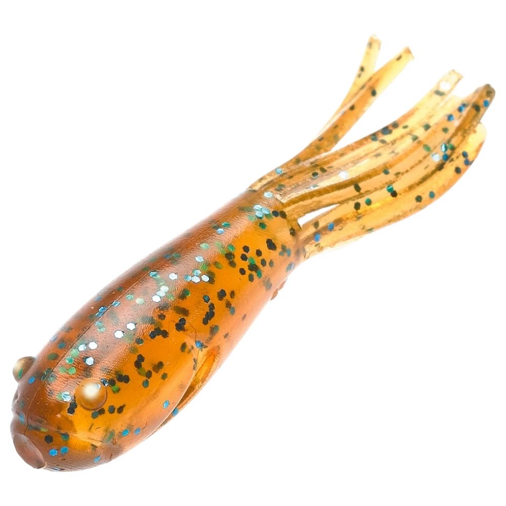The thin skirt offers a controlled action, giving the Creepy Tube Mini a more subtle, gliding fall while creating micro-vibrations in the water to trigger reactionary fish. A highly effective rigging method for Creepy Tube Mini is the Light Carolina Rig or Splitshot Rig, utilizing a small dropshot-style hook and a light weight to drag the bait and then letting it slowly float upwards on the pause, mimicking the swimming habits of real baitfish. For a more traditional tube action, a small ball head jig can be used with a lift-and-drop technique, a great way to trigger violent reaction strikes. Creepy Tube Mini 1.5″ is finished with a coating of real shrimp oil for a long-lasting scent and taste that smallmouth bass, largemouth bass, panfish, trout, and more can not resist.