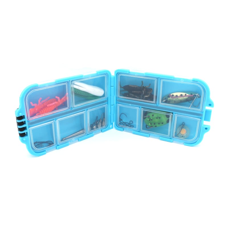 The Tsurinoya Double-Sided Mini Bait Box features a tough and durable outer shell with 10 convenient storage compartments on the inside. Perfectly suited for easy storage of terminal tackle, spoons, in-line spinners, and small soft baits. The Tsurinoya Double-Sided Mini Bait Box features a strong and tight outer clasp to keep your contents securely in place in case of a fall and a transparent, removable inner lid for convenient organization and cleaning. The Double-Sided Mini Bait Box is water-resistant, shockproof, and perfectly sized to store in a pocket or small fishing bag.