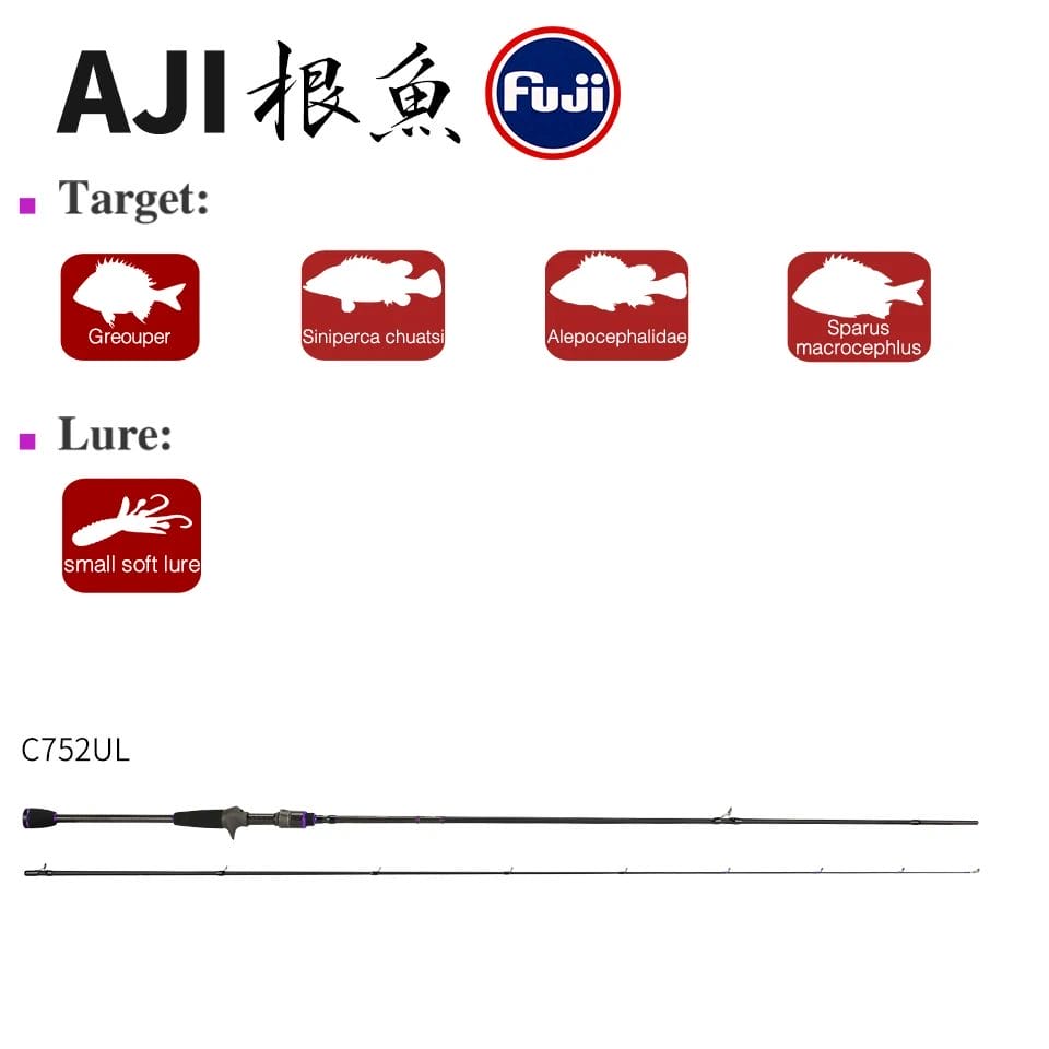 The Tsurinoya Elf Ajing Rod is designed for the saltwater angler targeting mackerel (aji), rockfish (mebaru), and other light game species with finesse soft plastics. The Elf Ajing Rod is extremely sensitive and lightweight and features an ultra-light blank with a fast action tip. When paired with a light braided line (0.2-0.4 goh recommended), these rods offer incredible casting distance, bite detection, and hook setting power.