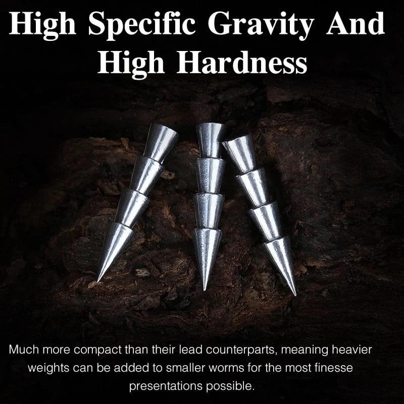 These Tungsten Nail Weights from Tsurinoya are highly adaptable and can be used in various applications where a compact weight is needed. Constructed from tungsten with high specific gravity, Tsurinoya Tungsten Nail Weights are smaller and offer a higher level of sensitivity than comparable weighted lead, allowing for truly finesse presentations of soft plastic. Use these Tungsten Nail Weights for wacky rigs, Texas rigs, creature baits, and more when you need to get down deep quicker yet need to maintain a small profile for highly pressured and wary fish. Built with a tapered end point for easy insertion, these weights won’t slip out even when working lures aggressively and through cover.