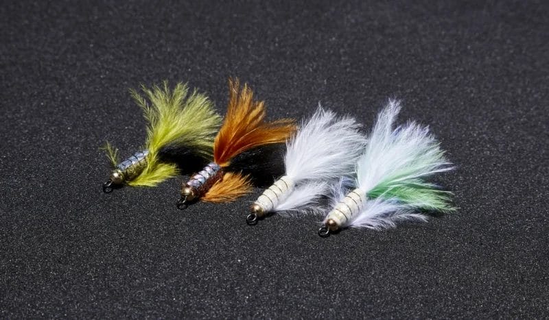 Vanfook Leech 1.2gr Feather Jig is a high-quality JDM feather jig that offers tremendous appeal. Sized just right for bait finesse and ultra-light spinning tackle, Leech 1.2gr is perfect for anglers targeting highly pressured and selective trout. Easy to use, Leech 1.2gr works best with a slow and steady retrieve; about 2-3 seconds per handle turn will keep it swimming in the stroke zone. To target more reactionary fish, a simple lift and drop retrieve can be used. When you feel a bite, reel down quickly to firmly set the barbless hook on your catch. Made from real feathers and abalone and wire wrapped for durability, the Vanfook Leech 1.2gr Feather Jig offers a beautiful natural action in the water that appeals perfectly to the predatory senses of trout and other light game species.
