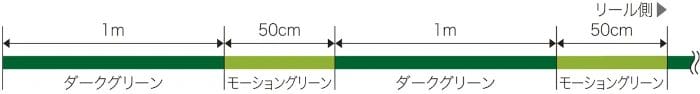 The two-tone color, alternating between dark green and hi-viz motion green, allows for easy line tracking and monitoring. The colors have been carefully selected to blend in, providing maximum camouflage from the fish while remaining highly visible to the angler.