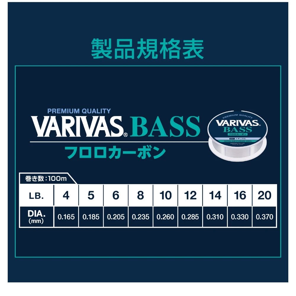 The new standard in high-performance JDM fluorocarbon lines, VARIVAS Bass Fluorocarbon is engineered to cover a range of bass fishing applications. Focusing on three key features: strength to battle big bass, durability for fishing cover, and sensitivity to detect every bite, Bass Fluorocarbon is a dependable choice when anglers need to balance performance and affordability. Bass Fluorocarbon features a Natural Clear colorway that is invisible in the water, giving anglers the edge in even highly pressured and ultra-clear waterways. Varivas Bass Fluorocarbon line is parallel wound onto the spool, ensuring the line maintains its integrity and shape.